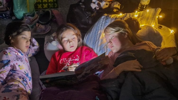 Con motivo de la Semana de Lectura en la Primaria del 05.-09.05.2025, las niñas y los niños de la clase 3A se reunieron con sus profesoras y su practicante el martes por la noche para una Noche de Lectura conjunta en la biblioteca. Equipados con un saco de dormir, una colchoneta, una linterna y, por supuesto, su libro favorito, la biblioteca se convirtió en un gran campamento nocturno para leer y jugar hasta la oscuridad tardía.