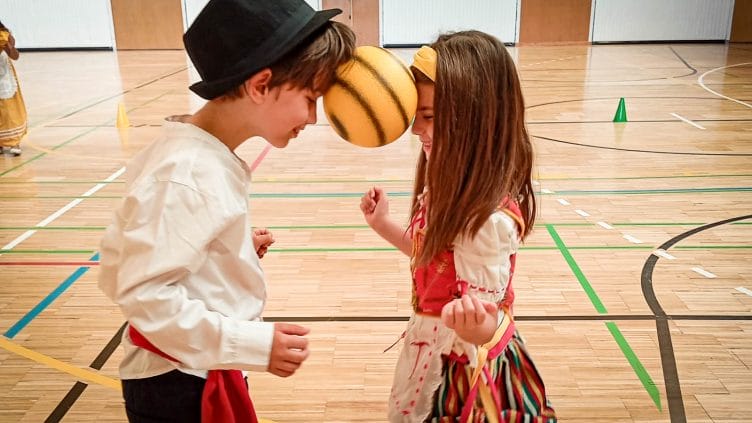 Später haben wir gemeinsam gefrühstückt, Bilder gemalt, verschiedene Dinge über unsere Inseln gelernt und lustige Spiele in der Sporthalle gemacht.