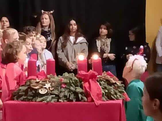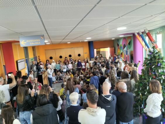 Das Adventssingen konnte in diesem Jahr endlich wieder gemeinsam und stimmungsvoll mit allen Schüler*innen, ihren Lehrer*innen und vor interessierten Eltern in der Eingangshalle unserer Schule durchgeführt werden und leitet traditionell die Weihnachtszeit an der DST ein.