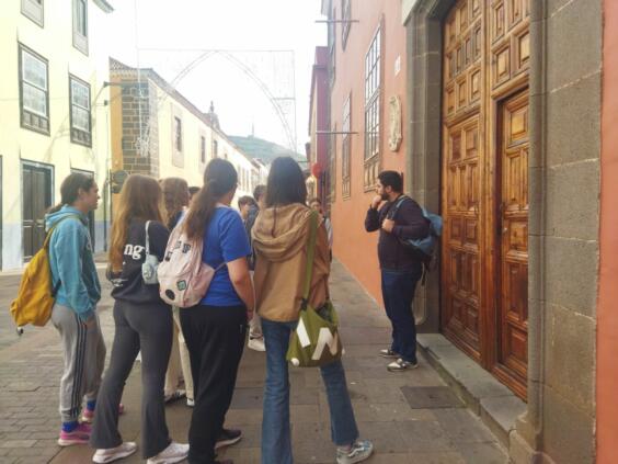 Die Schüler*innen konnten nicht nur die Geschichte der Stadt in deren Straßen entdecken, sondern auch wichtige Gebäude wie La Casa Lercaro und La Casa Montañés besichtigen. Ganz besonders war der Besuch bei der Sociedad Económica de Amigos del País, wo die Schülerinnen und Schüler vom Direktor (und ehemaligen Rektor der Universität La Laguna) José Gómez Soliño empfangen wurden. Auf diese Weise lernten die Schülerinnen und Schüler wichtige Persönlichkeiten der Aufklärung auf den Kanarischen Inseln wie Viera y Clavijo oder die Familie Nava-Grimón und ihre Beiträge zu unserer Kultur kennen.