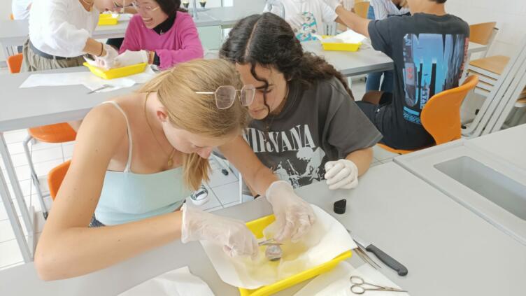 Wie eklig!!! Das war das Erste, was die Schüler*innen der Klasse 9 gesagt haben. Aber bald danach, haben alle sehr interessiert, das Rinderauge seziert, mit Skalpell, Pinzetten, Lupe, Messer und Handschuhen ausgerüstet. Sie konnten so alles Strukturen erkennen, die wir zum menschlichen Auge im Biologie-Unterricht gelernt hatten. Vielen Dank an unsere Praktikanten Madlen Wagner, Laura Peschke und Marcel Zschiedrich für ihre Unterstützung! Das war ein sehr schöner und interessanter Abschluss des Biologieunterrichts der Klasse 9!