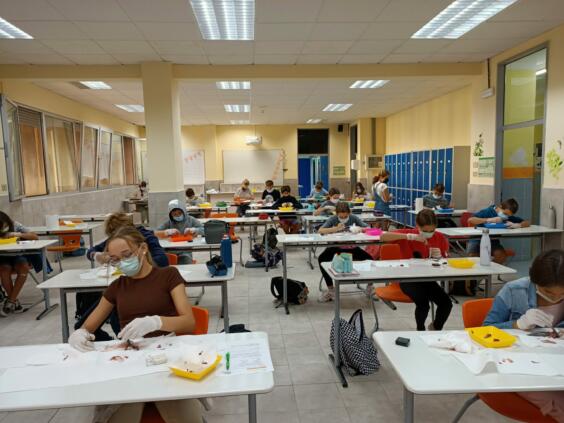 Heute waren die Schüler*innen der Klasse 7a dran – endlich Fische sezieren. Fleißig und sehr ordentlich
