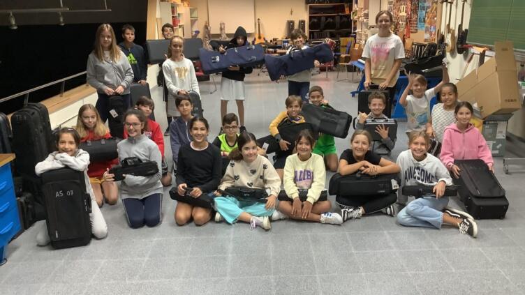 Gestern und heute haben die Kinder der Klassen 5 endlich ihre Instrumente für die Bläserklasse bekommen. Nachdem im Unterricht alle Instrumente vorgestellt und alle Mundstücke ausprobiert wurden, duften die Kinder ihre Wunschinstrumente wählen. Jetzt beginnt die Arbeit für die fast 50 jungen Musikerinnen und Musikern und alle lernen voller Eifer ihr Instrument kennen.