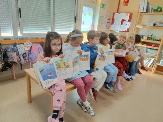 Voll Vorfreude und Aufregung besuchte die Klasse G1B am Freitag die K3+ Gruppen, um ihnen eine spannende Piratengeschichte vorzulesen. Stolz und mit großem Selbstvertrauen zeigten sie, wie gut sie schon lesen können. Die Kinder der K3+ Gruppen hörten interessiert zu und bedankten sich mit einem großen Applaus und einem selbstgebastelten Lesezeichen. Danach durften die Kinder der K3+ Gruppen den Erstklässlerinnen und Erstklässlern Fragen stellen und diese erzählten stolz, was sie in der Schule machen und was sie schon alles gelernt haben.