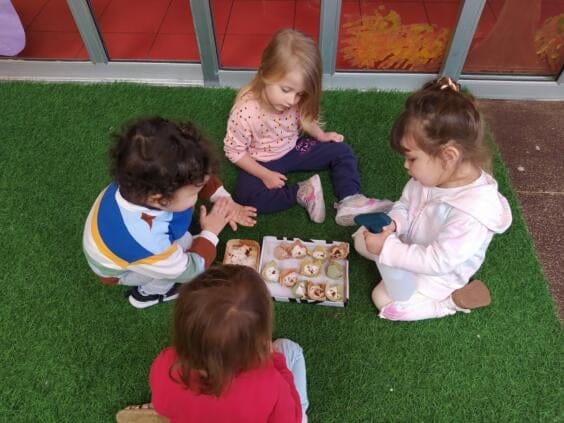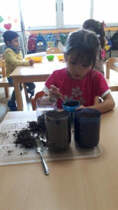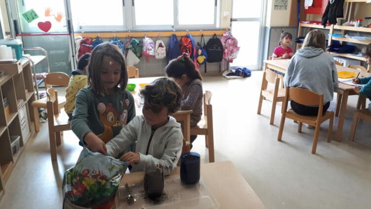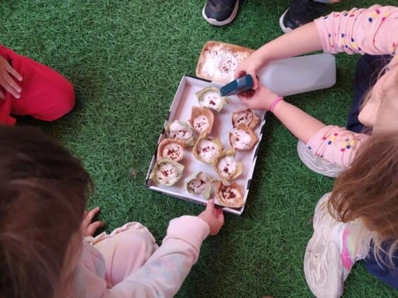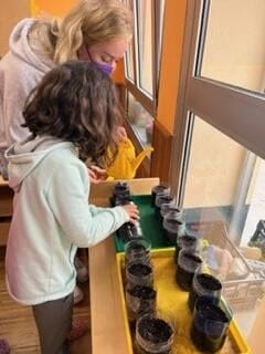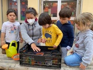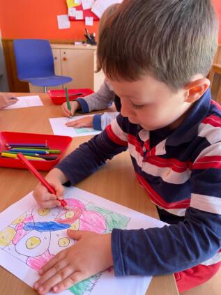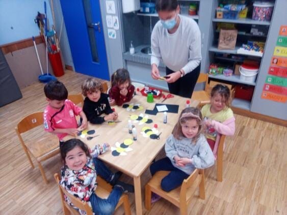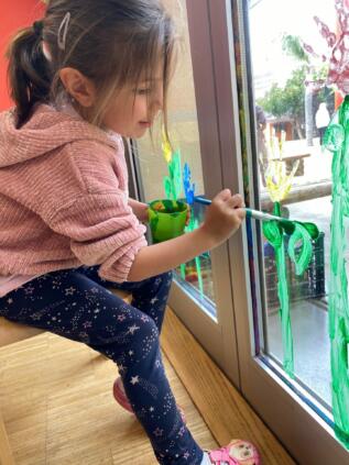 Im Kindergarten breitet sich der Frühling aus. Die Kinder basteln Blumen für die Fenster oder malen diese mit Wasserfarben. Außerdem werden fleißig Samen gesät. Die unterschiedlichsten Blumen und Frühlingsmotive dekorieren den Gruppenraum. Alle freuen sich auf den Frühling.