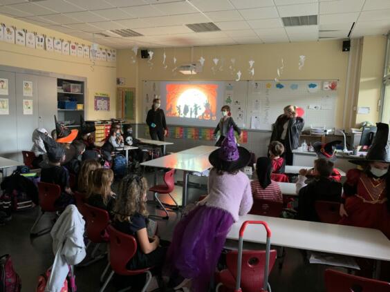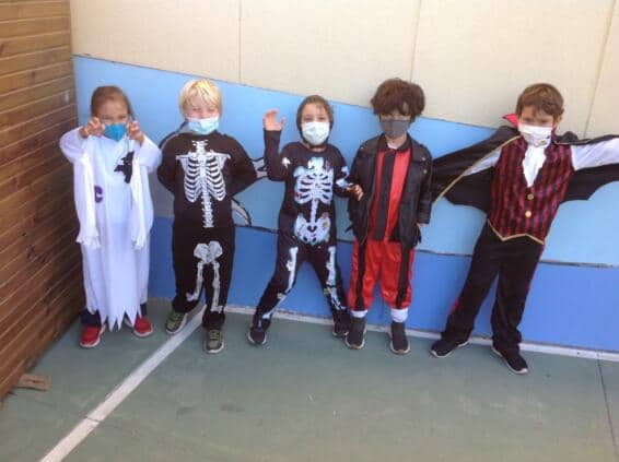 „Süßes oder Saures“ hieß es am Freitag in der Grundschule. Zu Halloween kamen Hexen, Zombies, Skelette und andere gruselige Gestalten und spukten durch die Klassen.
