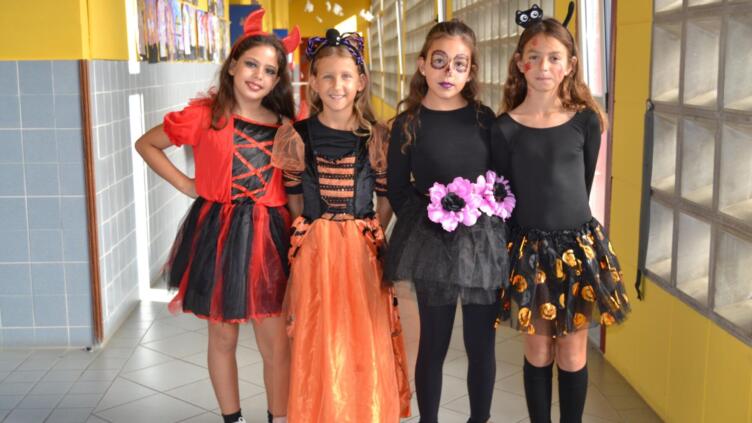 Überall wuselten kleine Hexen, Vampire, Gespenster und andere fantasievolle Gestalten durch die Flure.
