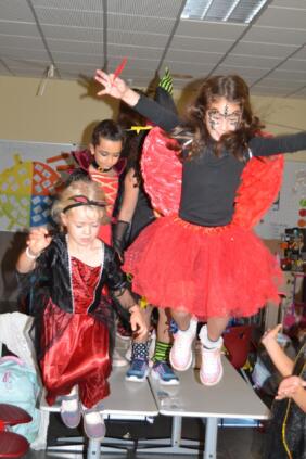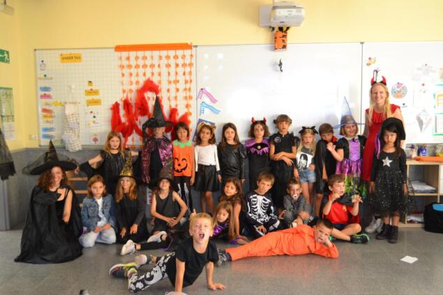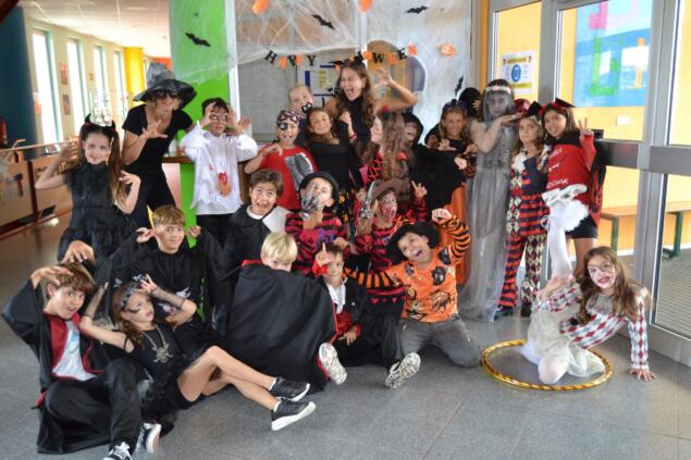 Überall wuselten kleine Hexen, Vampire, Gespenster und andere fantasievolle Gestalten durch die Flure.