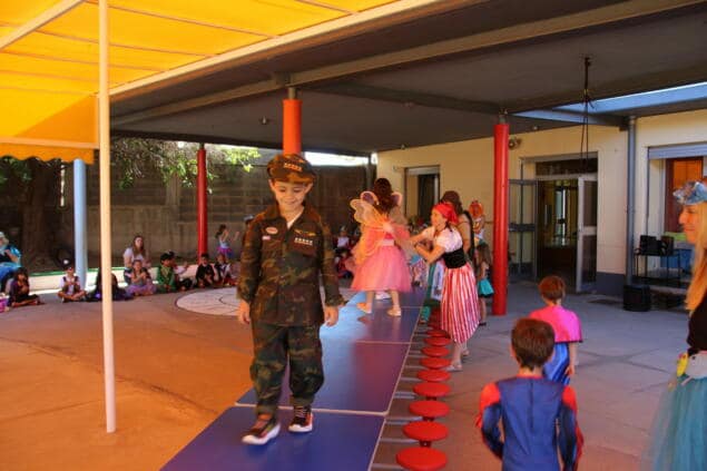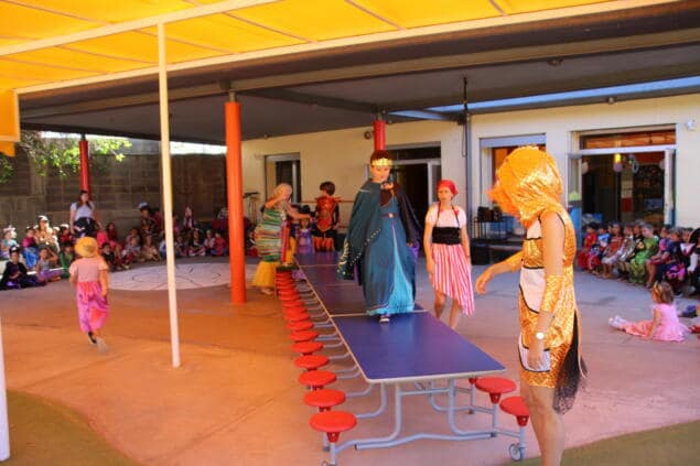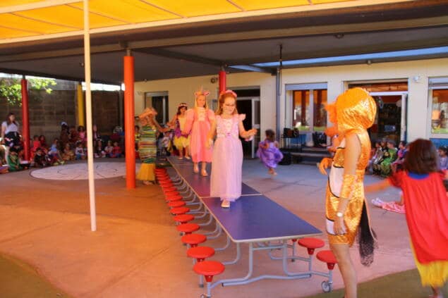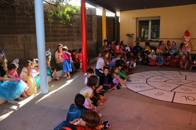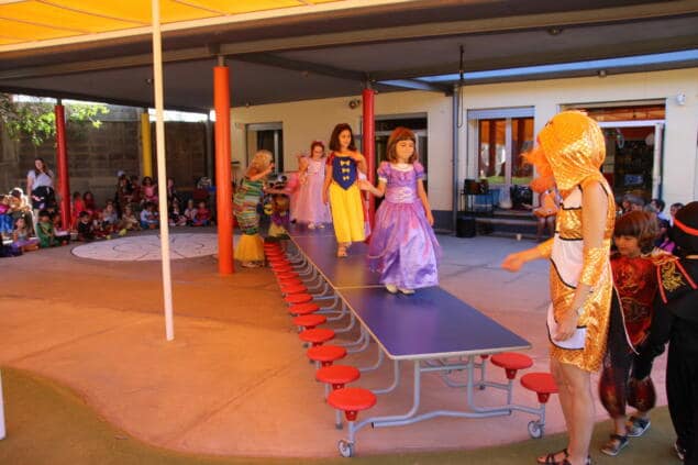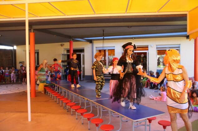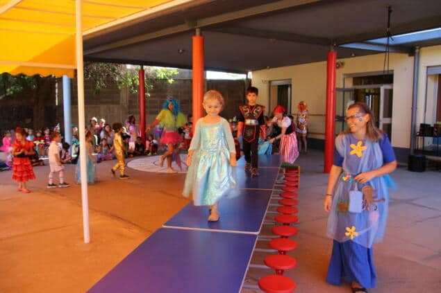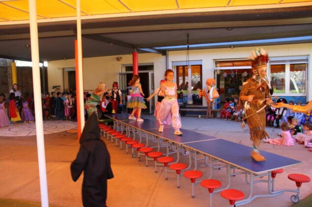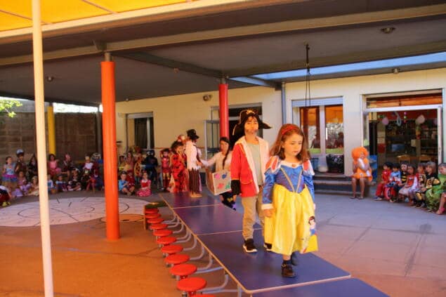 Kindergartenhof, bei der alle Kinder ihr Kostüm präsentieren konnten. Alle Kinder durften zum Frühstück auch Dinge mitbringen, die sonst im Kindergarten nicht erlaubt sind.