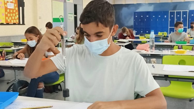 Unsere Schülerinnen und Schüler finden Schülerexperimente toll. So können sie  eigenverantwortlich arbeiten und selbstständig die physikalischen Gesetze herausfinden. Auch jetzt – in Zeiten von Corona – experimentieren wir auch fleißig. Alles muss vorher desinfiziert werden, jede Schülerin und jeder Schüler erhält sein eigenes Versuchsmaterial, das Material darf nicht ausgetauscht werden und nach Abschluss wird wieder alles desinfiziert. Aber der Aufwand lohnt sich!