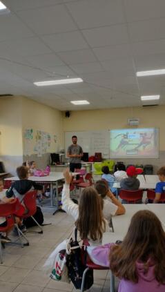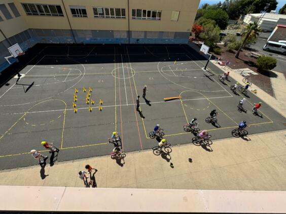 Wir haben mit einer Verkehrsaktivität angefangen, in der alle Kinder Fahrrad oder Roller gefahren sind, dank des Vereins “Cronotropo Vial” und dem “Club ciclista Viclass”. Außerdem haben wir diese Woche auch coole Kicker gebastelt, mit denen wir auch gespielt haben. Unsere