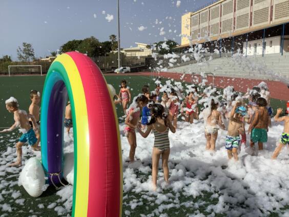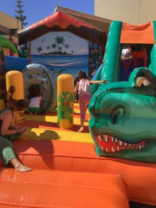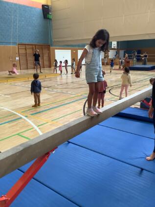 In der ersten Woche des Sommercamps sind wir in das Thema “Zirkus” eingetaucht und die Kinder haben schon viele neue Sachen ausprobiert. Sie haben mit Tellern jongliert, mit Reifen Kunststücke geübt und selber Jonglierbälle gebastelt. In der großen Turnhalle konnten sie als Akrobaten am Trapez schwingen und als Seiltänzer balancieren. Gemeinsam haben wir einen Zirkustanz einstudiert und im Kino Popcorn geknabbert. Für erfrischenden Spaß sorgten die Schwimmbecken und die Wasserrutsche auf dem Hof, das selbstgemachte Fruchteis und die Schaumkanone auf dem Sportplatz! Zum krönenden Abschluss der Woche durften sich die Kinder auf einer Hüpfburg vergnügen, sich Schminken lassen und wie im Zirkus eine Zuckerwatte naschen!