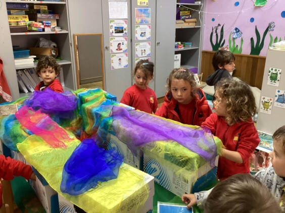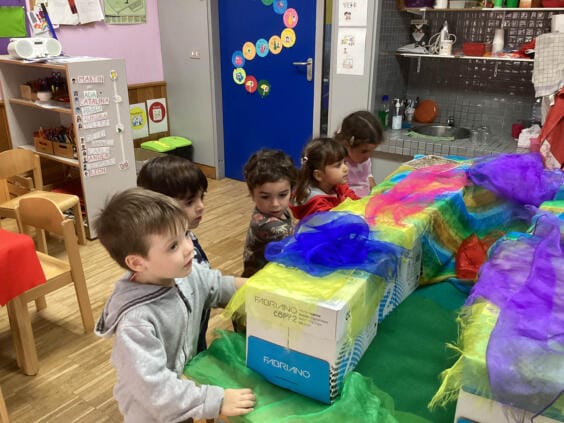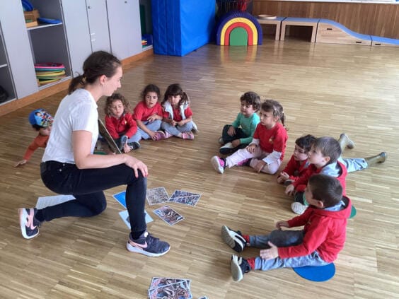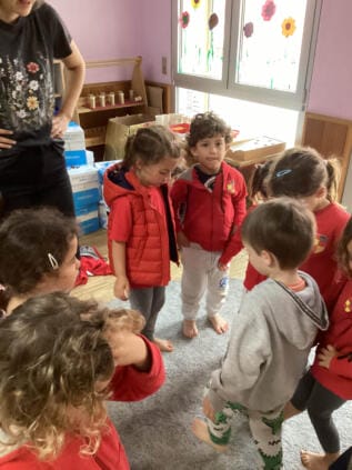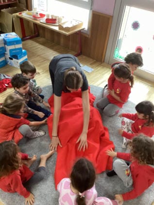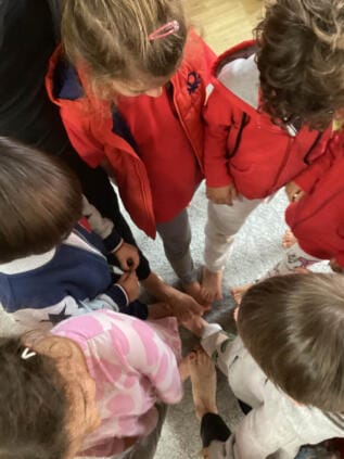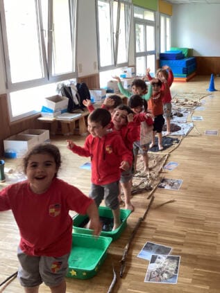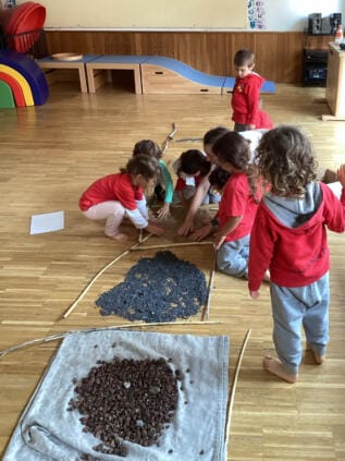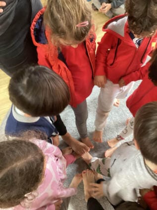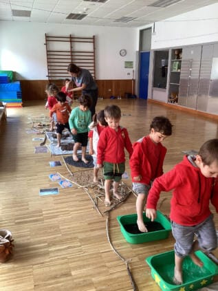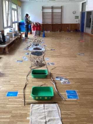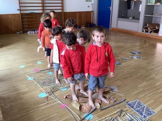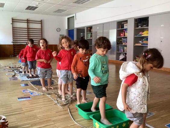 Dazu haben sie Naturmaterialien gesammelt, welche die Kinder in der ersten Einheit in Fühlboxen ertasten und anhand von Bildkarten zuordnen konnten. Ebenfalls haben die Kinder anhand einer Geschichte und einem Barfusslied ihr Körperbewusstsein und das entsprechende Vokabular erfahren.