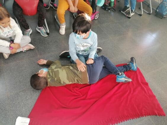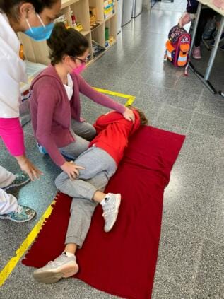 Im Mai wird in der Grundschule die stabile Seitenlage erlernt. Die Schüler*innen lernen wie wichtig diese Position  in bestimmte Krisensituationen ist.
