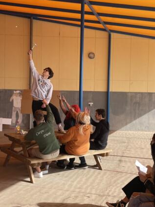 Die Jahrgangsstufe 12 hat zum Abschluss ihrer Schullaufbahn im Fach Deutsch ein Theaterprojekt durchgeführt. Dabei durften sie selbst geschriebene Stücke szenisch gestalten. Gemeinsam wurden die sehr kreativen Ergebnisse präsentiert, was alle als Abschluss sehr genossen haben.