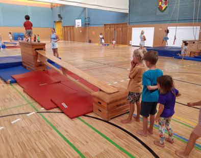 Am Freitag haben wir in der großen Turnhalle der Schule verschiedene Stationen aufgebaut und die Kinder haben begeistert alles ausprobiert.