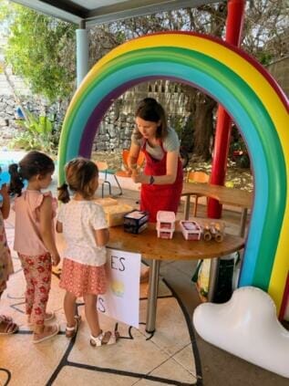 Diese Woche hatten wir leider ein paar Probleme mit dem Wasser, wodurch wir unsere Angebote ändern mussten. Statt Pools haben wir verschiedene Experimente mit Kerzen und Feuer ausprobiert, verschiedene Bastelangebote durchgeführt und sind eine Bewegungslandschaft in der Turnhalle durchlaufen.