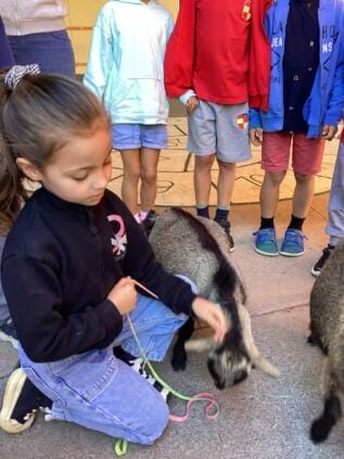 Am Montag, den 27. Mai hatten wir einen besonderen Besuch im Kindergraten. Die Familie von Elena aus der k3+ Giraffen-Gruppe, hat uns ihre zwei Ziegen, Chispita und Candela, mitgebracht. Wir hatten einen Platz für den Besuch auf dem Hof vorbereitet, und die Kindergartengruppen durften gruppenweise die Ziegen besuchen. Sie haben uns erklärt, dass es afrikanische Zwergziegen sind. Die Kinder durften sie streicheln und füttern.