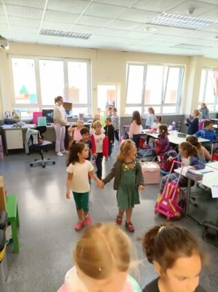 «¡1-2-3, se acabó el K3+!» sonó en la Primaria el penúltimo día de clase, cuando los niños fueron «lanzados» del Kindergarten a Primaria por sus educadoras. Después, los niños tuvieron la oportunidad de echar un breve vistazo a sus nuevas aulas.