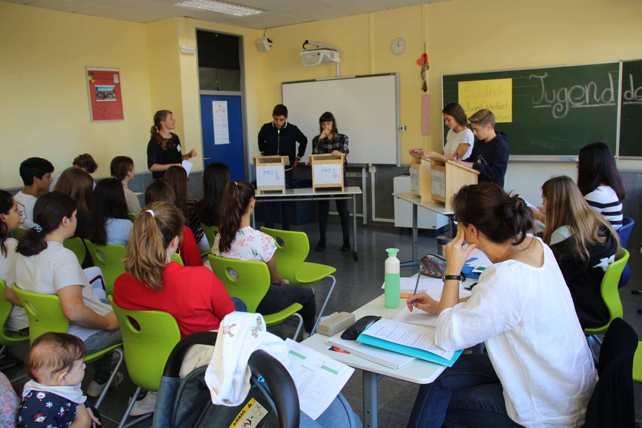 Este día también tuvo lugar la final del concurso «Jugend Debattiert» (la juventud debate). Los mejores oradores de las clases 9 y 10 se enfrentaron en tres debates sobre tres temas interesantes: ¿Se deben permitir patrocinios en el nuestro colegio? ¿Los alumnos pueden ser liberados de las clases para acudir a manifestaciones? ¿Se deben permitir los teléfonos móviles en clase? Los debates fueron animados, controvertidos e interesantes. Los ganadores de este curso son Iulia Mihail y Pablo Fernández de la 10c, en segundo lugar quedaron Helene Baaden y Marcos Oliva de la 10b, mientras que el tercer lugar lo ocuparon Pauline Gremes de la 10c y Chloe Klüsener de la 9a. ¡Muchas felicidades por los debates! La siguiente parada es la final regional en marzo en el Colegio Alemán de Bilbao.
