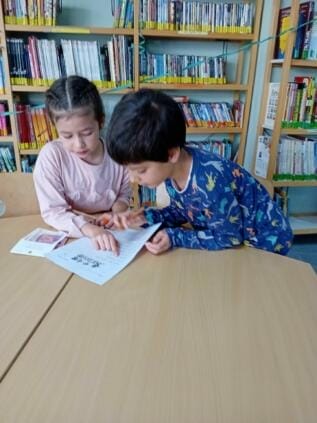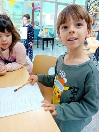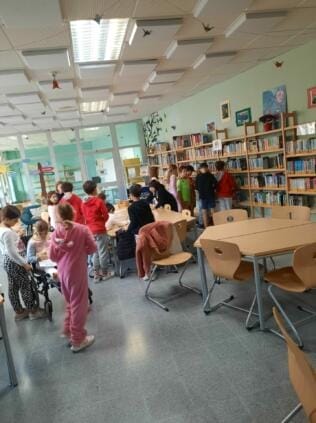En la semana de carnaval buena parte del alumnado de la primaria de las clases 1 a 4 se fue a buscar pistas en la biblioteca.