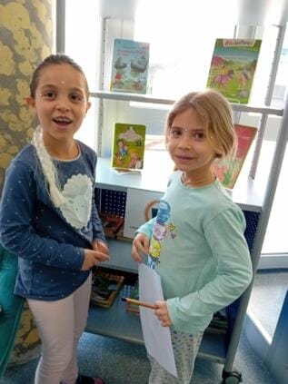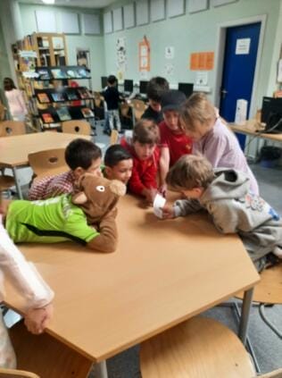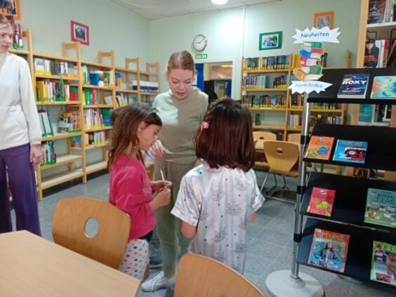 En una desafiante búsqueda de tesoro que se había preparado para los grupos más mayores, las pistas estaban escondidas dentro de los libros. Las niñas y los niños tenían que encontrar un sinfín de libros y descifrar las informaciones. Resolvieron su tarea con destreza y para finalizar gritamos elo típico saludo de carnaval: “¡Helau, Alaaf!