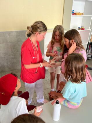 No todo fue deporte, las tardes las pasamos jugando a juegos de mesa, haciendo manualidades,viendo películas y aprendiendo de la mano de nuestra enfermera Marina. Terminamos la semana con un castillo hinchable y la entrega de diplomas y carnés deportivos.