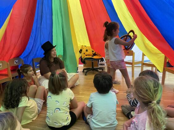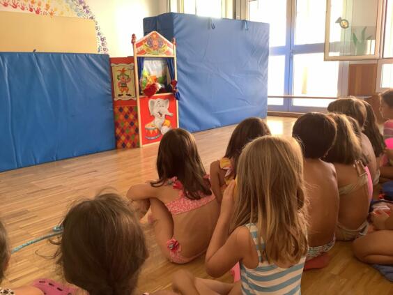 También en la segunda semana de nuestro campamento de verano en el KiGa hubo muchos trucos de magia nuevos, los niños y las niñas pudieron probar sus habilidades como payasos y magos y se convirtieron en acróbatas en el gran gimnasio del colegio. Un divertido espectáculo de marionetas nos hizo reír a todos y como refresco tomamos una granizada casera y los niños y las niñas chapotearon alegremente en las piscinas.