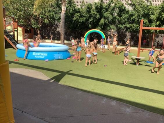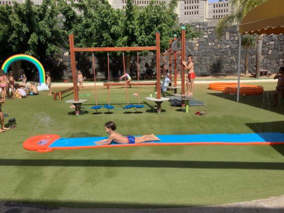 Al final de la semana, los niños pudieron divertirse en la fiesta de la espuma con el tobogán acuático, endulzando la tarde con algodón de azúcar casero.
