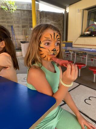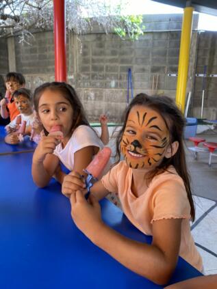 Para despedirnos de la semana, después de nadar y chapotear en la piscina, hubo helado casero de sandía, deliciosos gofres hechos por los niños y niñas con azúcar y pintacaras.