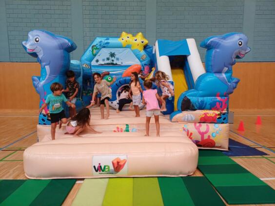 Volvimos a visitar el gran gimnasio para columpiarnos y hacer equilibrios. Por supuesto, también hubo cine con palomitas. En el gran campo de deportes nos divertimos con el cañón de espuma y el tobogán de agua. Los niños y niñas también hicieron estupendas máscaras de animales de circo.