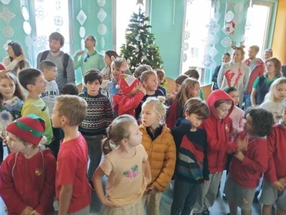 Para prepararse para la época navideña, el alumnado de Primaria, sus familias y el profesorado se reunían todos los lunes de diciembre para cantar el Adviento.