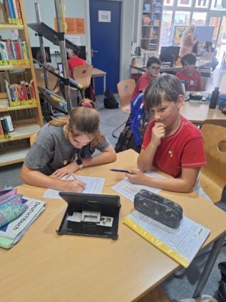 El miércoles por la tarde, los cursos 5º y 6º trabajaron juntos en varias tareas de Deutsch Plus. Los alumnos de 6º ayudaron a los de 5º a resolver diversas tareas. Entre ellas, buscar información en textos, escribir textos ellos mismos y resolver tareas de gramática. Esta colaboración fue muy beneficiosa para ambos cursos.