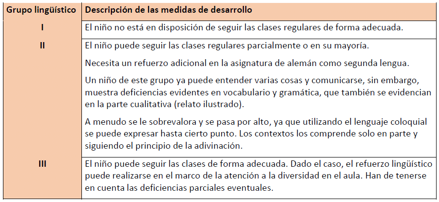 Atendiendo a los resultados de las pruebas, los niños pueden clasificarse en tres grupos lingüísticos, homogéneos en cuanto al nivel: