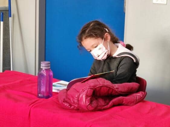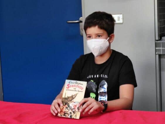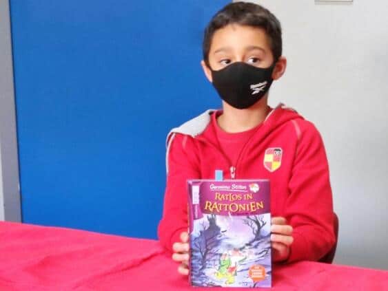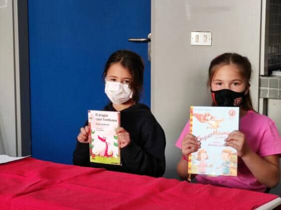 El curso pasado, el concurso de lectura tuvo que celebrarse online debido a la pandemia. Con más mimo y tiempo, los niños de la primaria pudieron leer „en vivo“ ante un jurado (B. Spöck, M. Lehrmann, C. Acevedo, S. Paul) en el colegio según cada caso un texto conocido y otro desconocido uno en español y el otro en alemán.