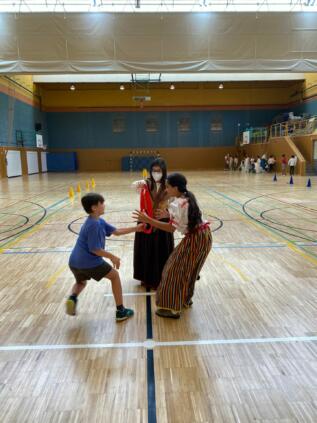 Hemos podido jugar a juegos tradicionales en el pabellón de deportes y degustar algunos productos de la gastronomía típica canaria.
