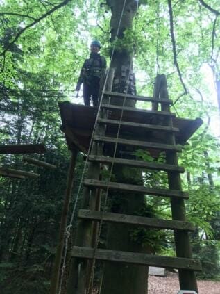 Tras una calurosa bienvenida en el patio de la primaria, los niños fueron al parque de aventuras «Fun Forest», en Kandel. Los niños escalaron varios circuitos y se atrevieron a alcanzar alturas de hasta 10 metros. Ni siquiera un breve chaparrón pudo con la diversión.