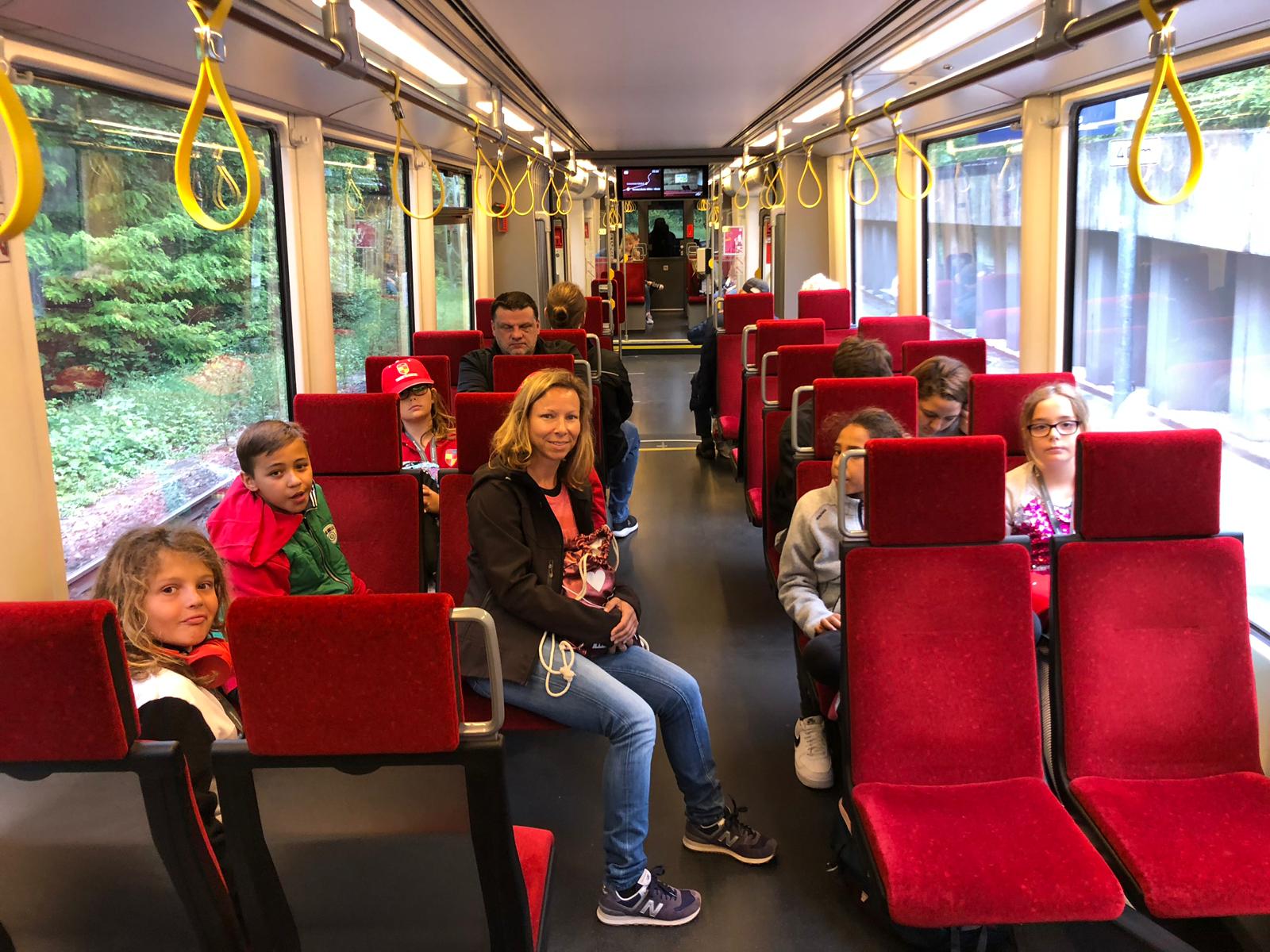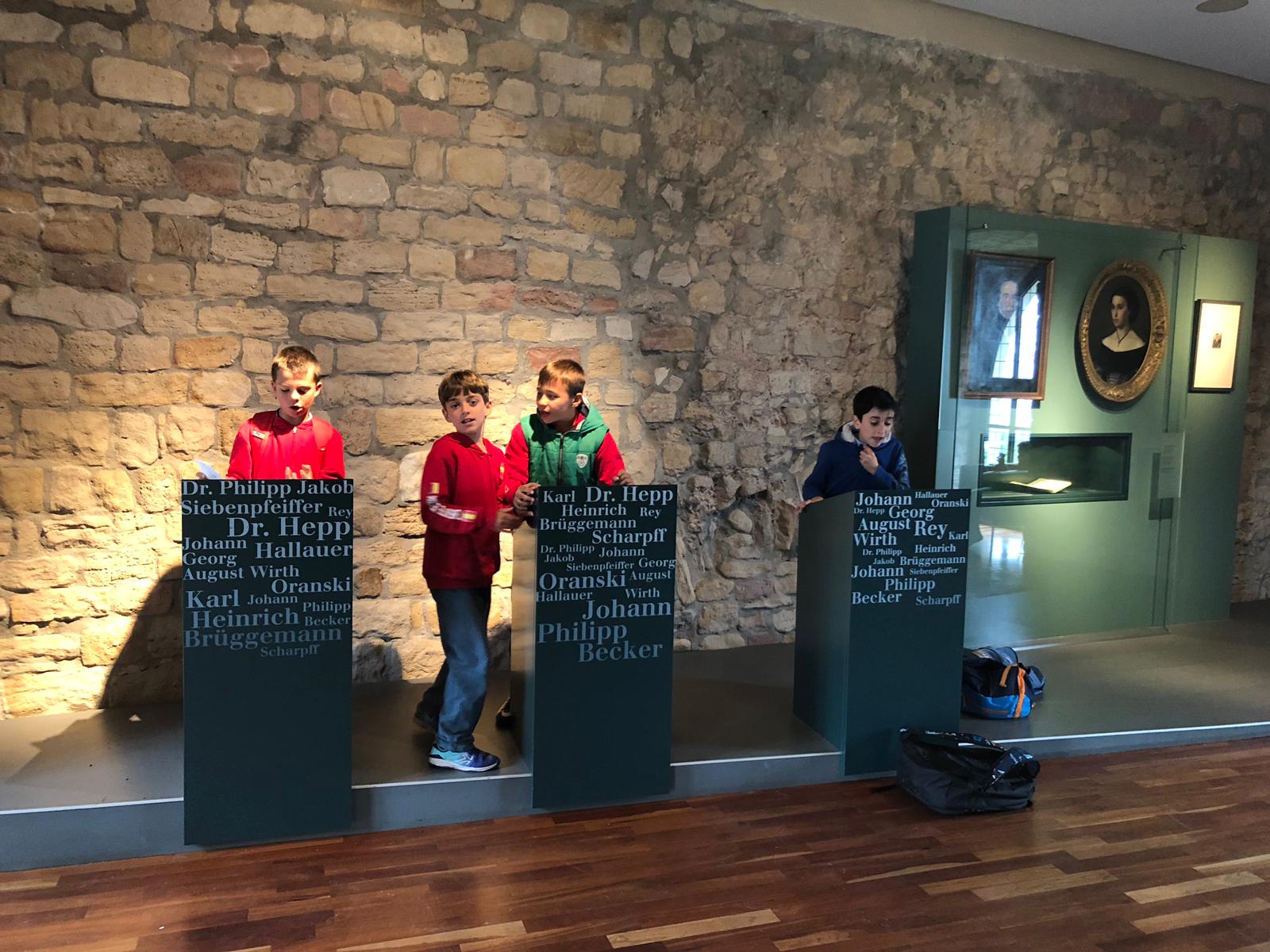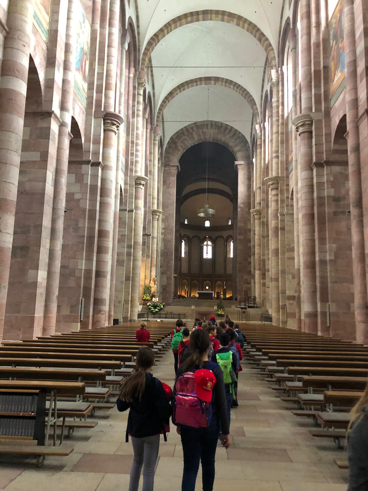 Hoy viajamos en tren hasta Speyer. ¡Fue muy emocionante! Vimos la catedral y el museo tecnológico. En el museo pudimos descubrir muchas cosas: aviones antiguos, coches de época, naves espaciales, submarinos y mucho más. ¡Lo mejor fue el gran tobogán!
