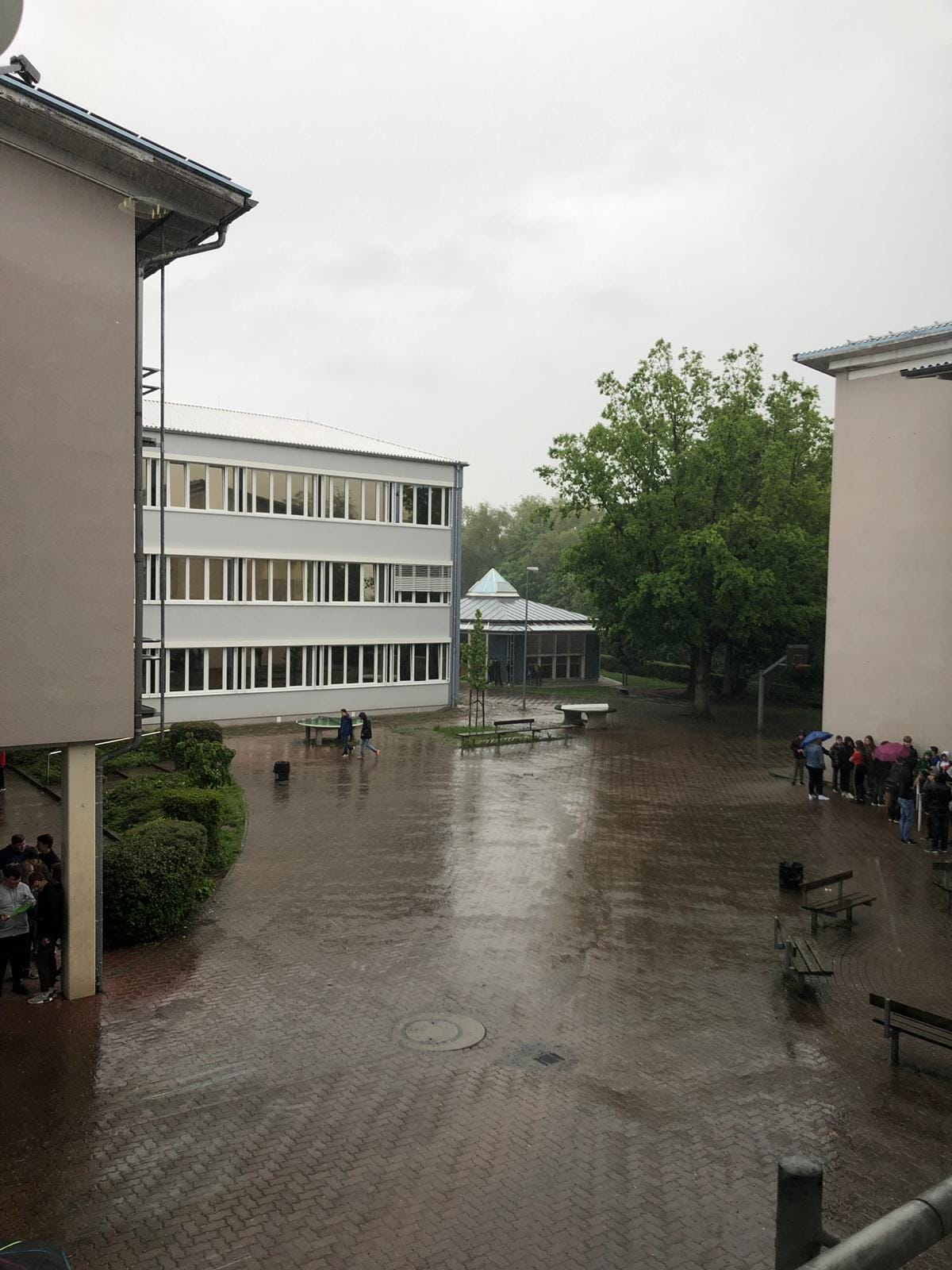 Hoy llueve sin tregua. Y, ¿qué pega mejor con eso? Sí, un día de colegio. ¡En clase de deporte, Ciencias, Matemáticas, Alemán, Música y Arte no dejamos que nos quiten el buen humor!