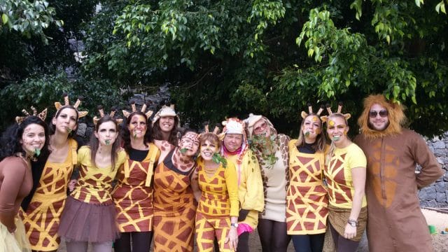 El idioma de las jirafas se emplea en el día a día, ya que las maestras lo utilizan para resolver los conflictos que se producen entre los/as niños/as. Acompañamos el proyecto con una canción sobre jirafas y su baile. Para finalizarlo, el equipo del Kinder se disfrazó de jirafas para la fiesta de carnaval.