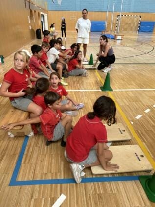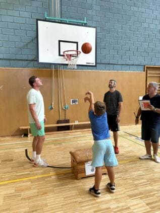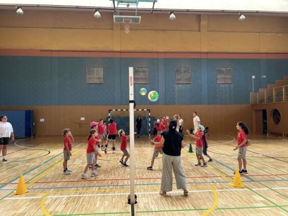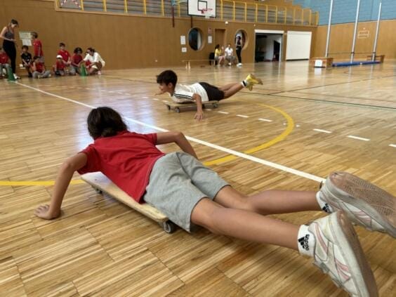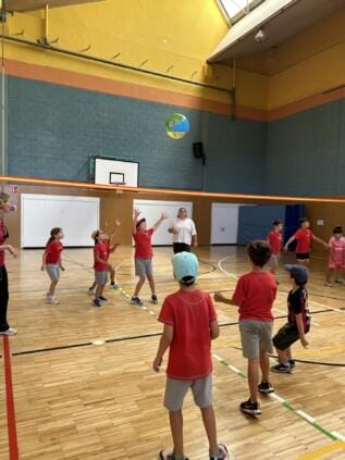 El lunes 24 de junio de 2024 por fin había llegado el momento: no había colegio para el alumnado de primaria, ¡sino deporte durante todo el día! El lema de este año era «Olimpiadas de verano 2024». Hubo muchas estaciones en las disciplinas olímpicas. Por supuesto, tras las disciplinas normales como waterpolo, lanzamiento de jabalina, equitación militar y natación, había ejercicios sencillos y divertidos que podían realizarse en el pabellón o en el campo de deportes.