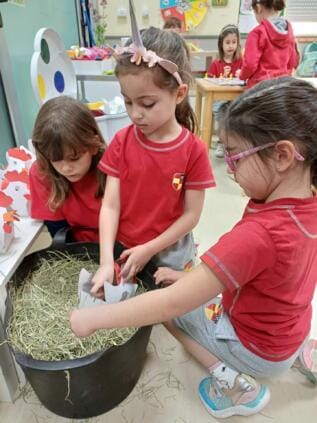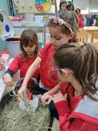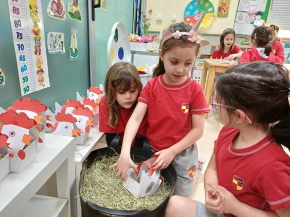 El Kindergarten se ha preparado para la pascua. Hemos cantado canciones, hemos mirado cuentos sobre el conejo de pascua, creado manualidades y en deporte transportamos huevos y los escondimos, tal como hace el conejito de pascua. Tras tener todo preparado llegó el momento de buscar nuestras cestitas de pascua. ¡El conejito de pascua se las llevó de las aulas! Hoy las primeras clases encontraron sus cestitas y se alegraron al ver las cositas que el conejito les había preparado. Este curso nuestras cestitas tenían una peculiaridad, las pudimos rellenar con paja, para que el conejito tuviese un lugar agradable donde dejar sus chocolatinas y huevitos, y también pudiese mordisquear un poco de paja. Queremos darle las gracias a la familia de Elena, de la clase jirafa, por traernos la paja para las cestitas de todo el Kinder.