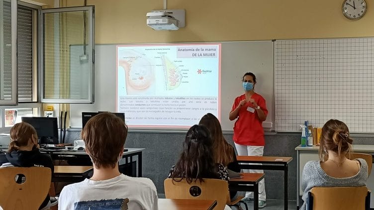 Hoy las alumnas de las dos clases 11 recibieron una charla sobre la prevención del cáncer de mama, que impartió nuestra enfermera escolar Gema Paz Bautista. Ella les explicó cómo hacerse una autoexploración mamaria y lo importante que es prevenir y cuidarse. Al final de la charla, Gema les entregó a todas las chicas un detalle como recuerdo, que ella misma había hecho para ellas. ¡Muchas gracias, querida Gema!