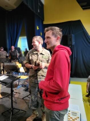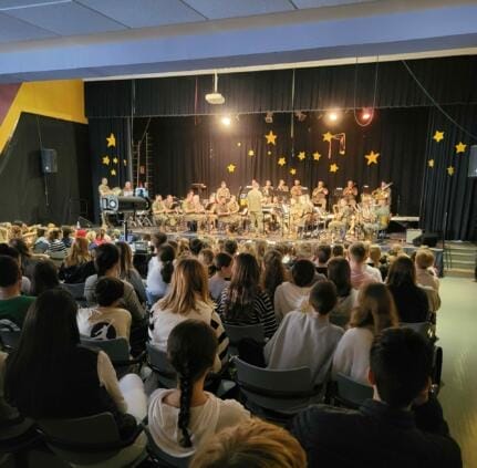 Toda la semana pasada en el DST estuvo dedicada a la música. Se oyó voces y melodías por todas partes y se vio a las niñas y a los niños correr a los ensayos con sus instrumentos. A menudo les acompañaron mentores musicales de Kirchhain, que participaron en un programa de intercambio en nuestro colegio. Pero no sólo tuvimos invitados musicales de Alemania. También nos visitó la «Unidad de Música del Mando de Canarias» y organizó un gran concierto didáctico para el alumnado de las clases 4 a 11. El director presentó, entre otras cosas, cada uno de los instrumentos de viento, lo que provocó una gran ovación entre el alumnado, que actualmente también trabajan con instrumentos de viento en las clases 5, 6 y 7. Todos se divirtieron mucho con canciones de «Harry Potter», «Frozen», «Piratas del Caribe» y la «Pantera Rosa». Al final, nuestra alumna Inés de la clase 5 pudo incluso dirigir la banda. El alumnado, profesorado e invitados de Kirchhain pidieron repetidamente que la orquesta repitiera y, finalmente, se marcharon de la sala alegres e inspirados tras cantar a coro una canción de «Bob Esponja». Muchas gracias a nuestro profesor de música Stefan Igeler por la organización y, sobre todo, a los maravillosos músicos de la Unidad de Música del Mando de Canarias y a su gran director.