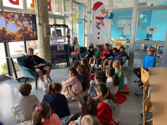 Desde el 1 de diciembre, el alumnado de las clases G1 y G2, así como los de las clases G3 y G4, resuelven un rompecabezas cada día. Además, algunas alumnas y algunos alumnos de las clases 5 han leído cuentos navideños escritos por ellos al alumnado de Primaria. Y, por supuesto, como todos los años, la biblioteca les invita a la gran venta de libros en el Mercadillo.