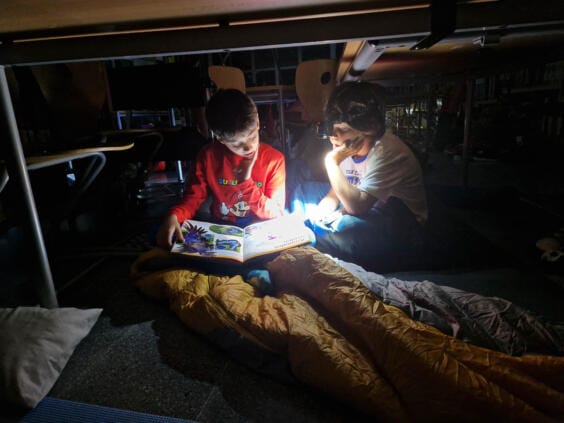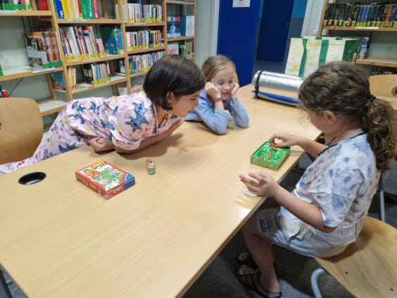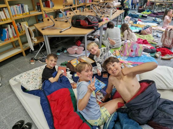 Con motivo de la Semana de Lectura en la Primaria del 05.-09.05.2025, las niñas y los niños de la clase 3A se reunieron con sus profesoras y su practicante el martes por la noche para una Noche de Lectura conjunta en la biblioteca. Equipados con un saco de dormir, una colchoneta, una linterna y, por supuesto, su libro favorito, la biblioteca se convirtió en un gran campamento nocturno para leer y jugar hasta la oscuridad tardía.