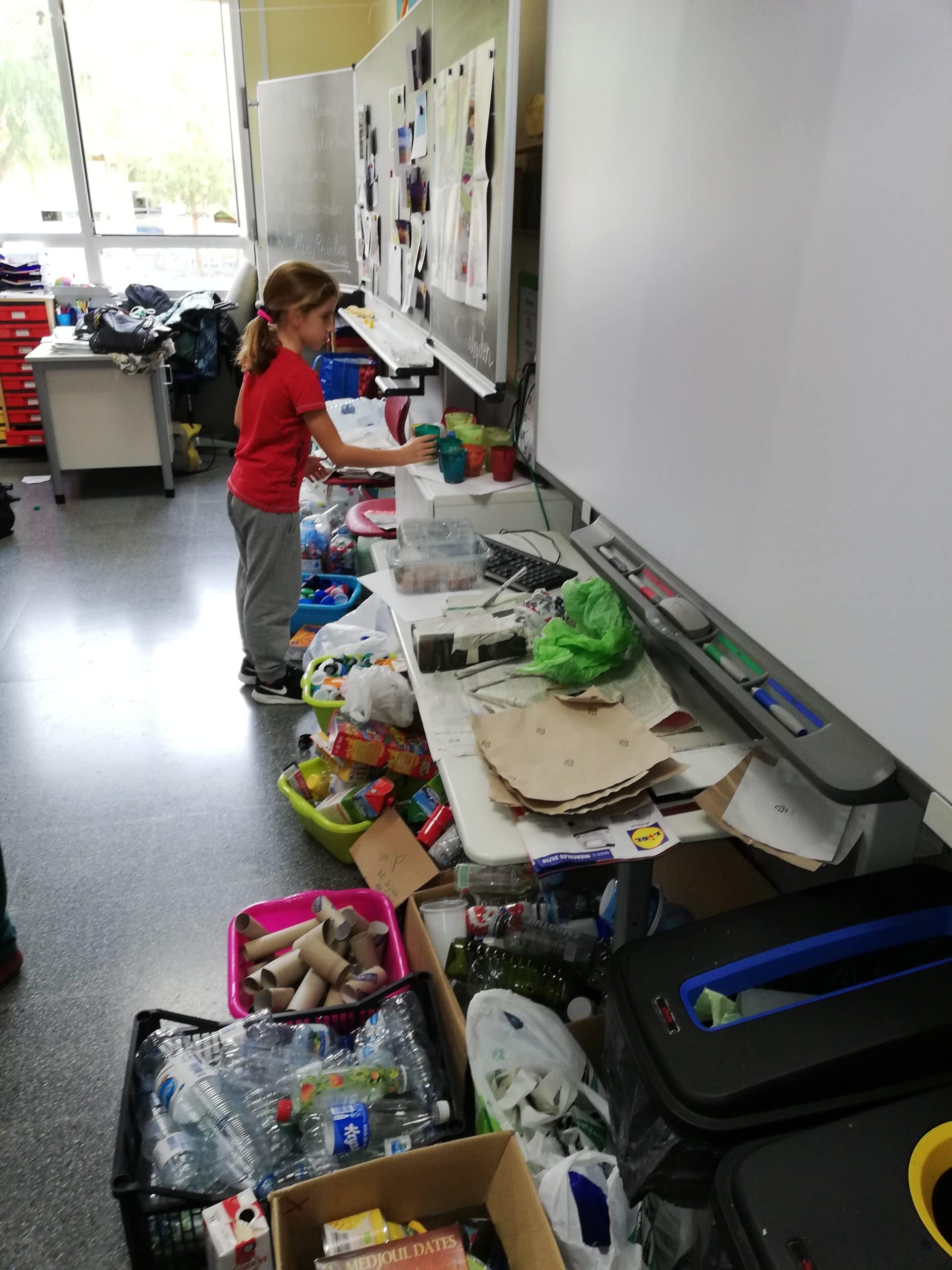 1° de Primaria trabajó sobre el otoño y 2° de Primaria dedicó sus esfuerzos a la isla de Tenerife. Los cursos de 3° y 4° pusieron a diferentes artistas en su punto de mira (Picasso y Hunderwasser). Trabajaron diferentes técnicas de impresión y modelaje, teniendo como tema principal la reutilización (upcycling) para tomar conciencia de la cantidad de residuos que contaminan nuestro planeta.