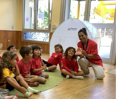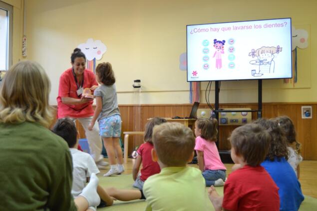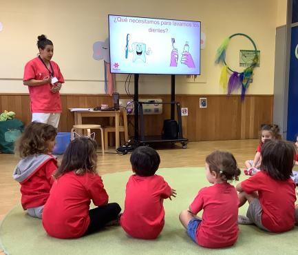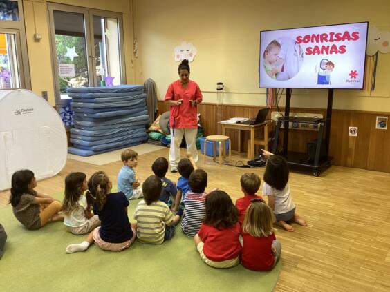 En nuestro Kindergarten el alumnado de K1 y K2 participó esta semana en el taller “Sonrisas Sanas”, impartido por la enfermera del colegio Bárbara Martínez Lobato. Durante esta actividad, las niñas y los niños visualizaron un vídeo educativo y recibieron una explicación práctica sobre la importancia del cuidado bucodental y la adopción de hábitos saludables.