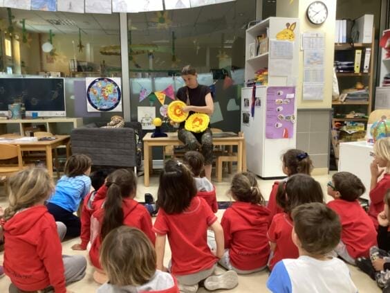 Una visita familiar programada a la isla dio a Lubomira Hujsová la idea de ofrecer su taller sobre el espacio en nuestro colegio. Lubomira suele trabajar con guarderías y colegios de Viena (AU), Bratislava (SK) y alrededores.