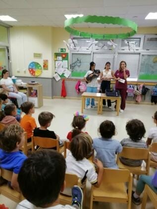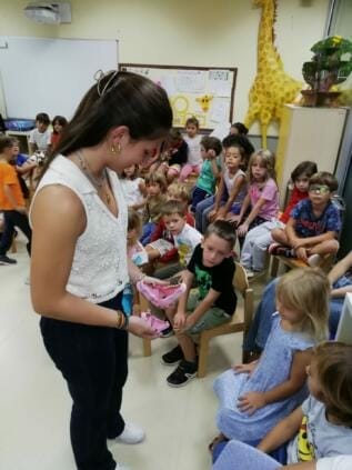 Henar, hija de Isabel y alumna de la clase 10 de nuestro colegio, ayudó con la traducción al alemán para los niños y las niñas.